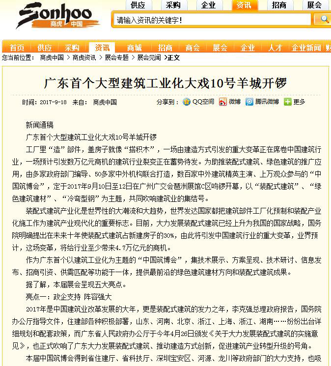 招商寶網發布有關2017中國筑博會·廣州開幕式的報道 (2017-10-30)
