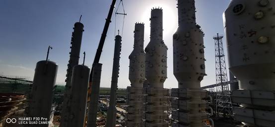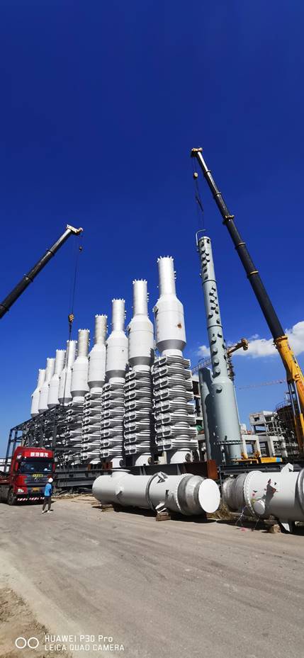 興華科技公司聯堿I過程塔類設備安裝全部完成